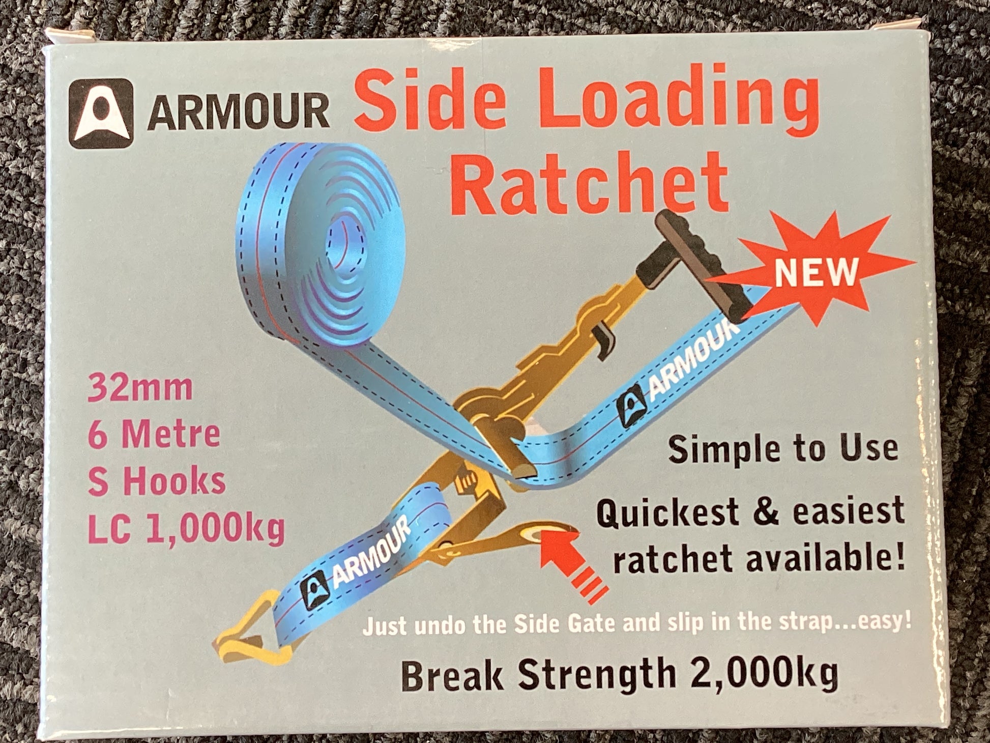 The Armour Side Loading Ratchet is a groundbreaking innovation in cargo securing technology, designed to streamline the process of strapping down loads for transport. This patented ratchet allows for quick and easy side loading of webbing, significantly reducing the time and effort required compared to traditional ratchet straps. Ideal for the trucking industry, tradespeople, and DIY enthusiasts, this ratchet is engineered for heavy-duty use, ensuring that your cargo stays secure during transit.