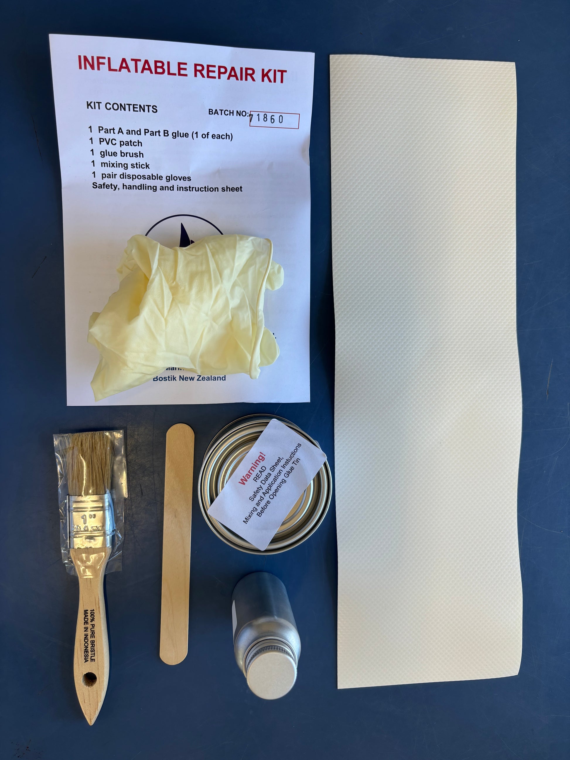 All in one kit for Inflatable PVC boat repair or for gluing davits on to PVC inflatables.