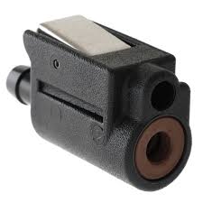 Quicksilver 22-13563Q7 Fuel Line Connector quick disconnect fuel line fitting specifically designed for the tank end of Mercury and Mariner outboard fuel lines. It is a double-sealed, clip-on connector that fits 5/16" (8mm) inner diameter fuel lines.